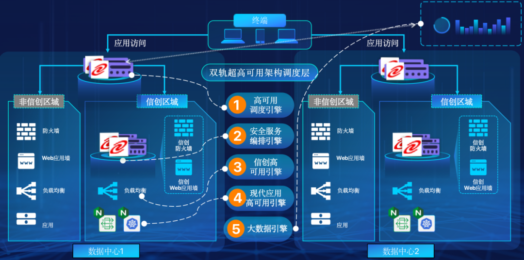 米兰电竞在企业面临自主创新IT基础重构过程中,推出的全新架构双轨超高可用架构(简称DTMAA),在双活数据中心的分区调度基础上,添加每个数据中心内信创域和非信创域的分域调度,来实现分区分域协同的多活双轨超高可用。